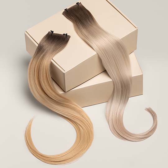 Sample pakket blond, midden bruin of donker haar 50/55 cm. Bevat 2 weften per pakket.